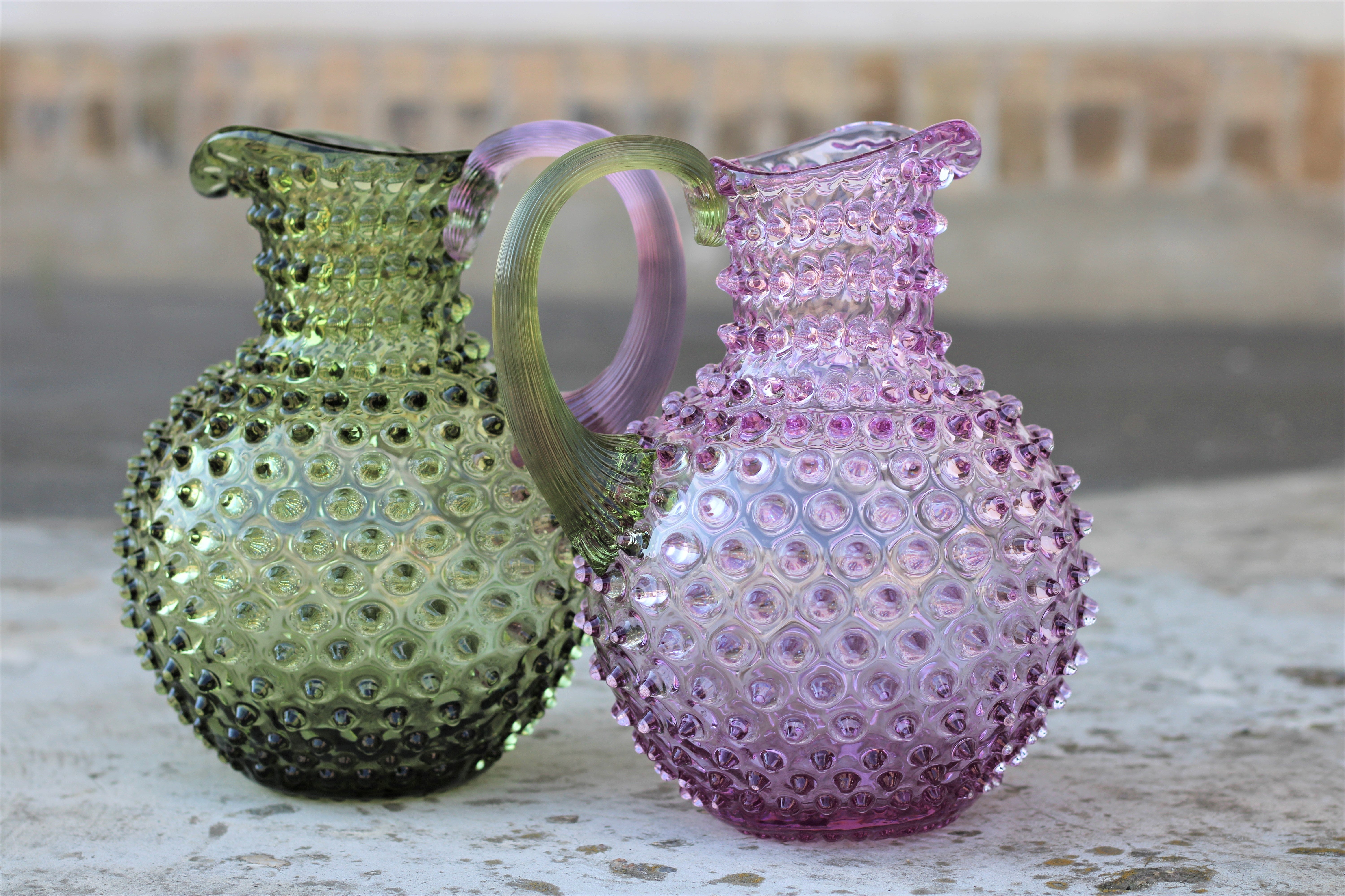 Handgefertigte Glas-Karaffen mit Noppenstruktur