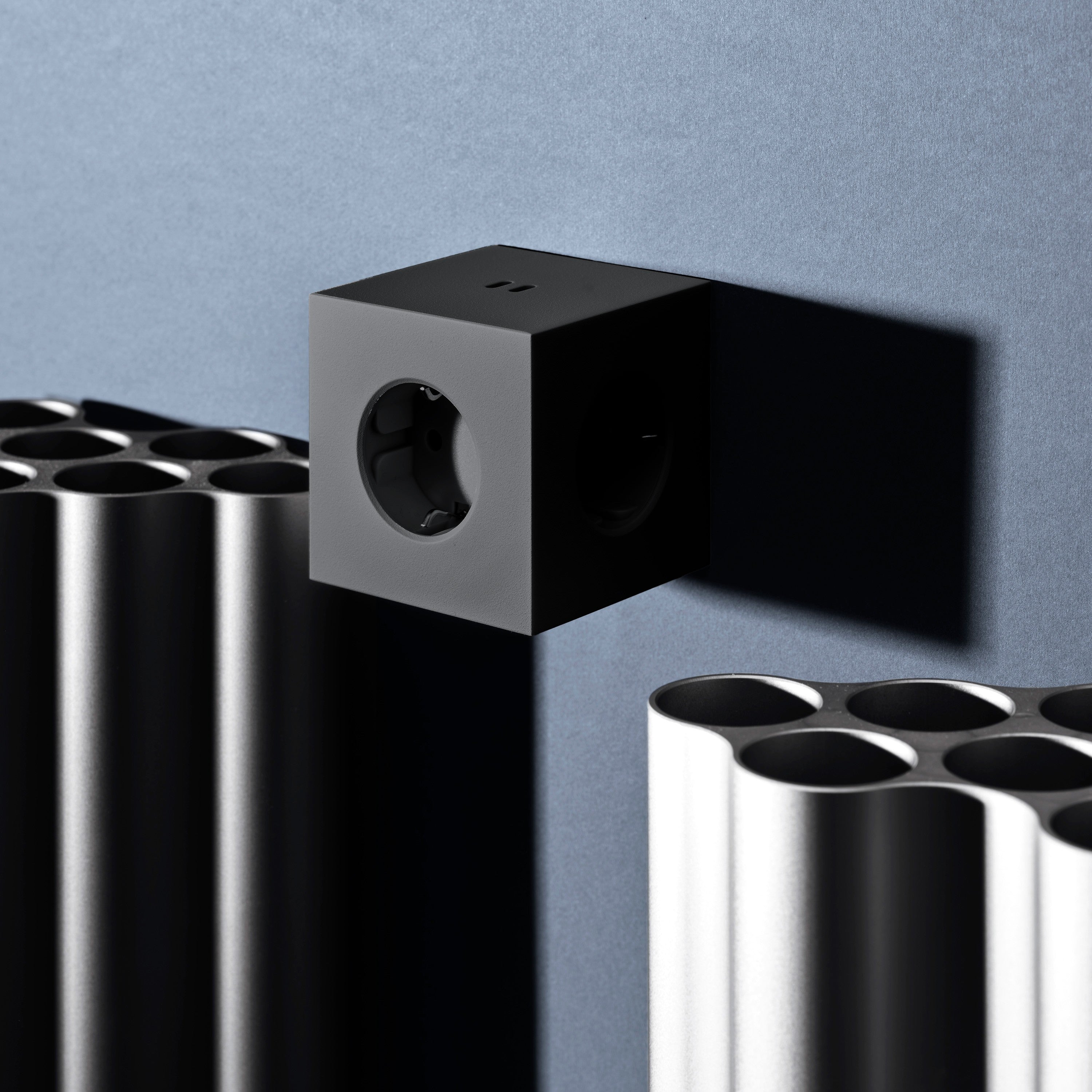 Design-Mehrfachsteckdose mit modernem Würfel-Format