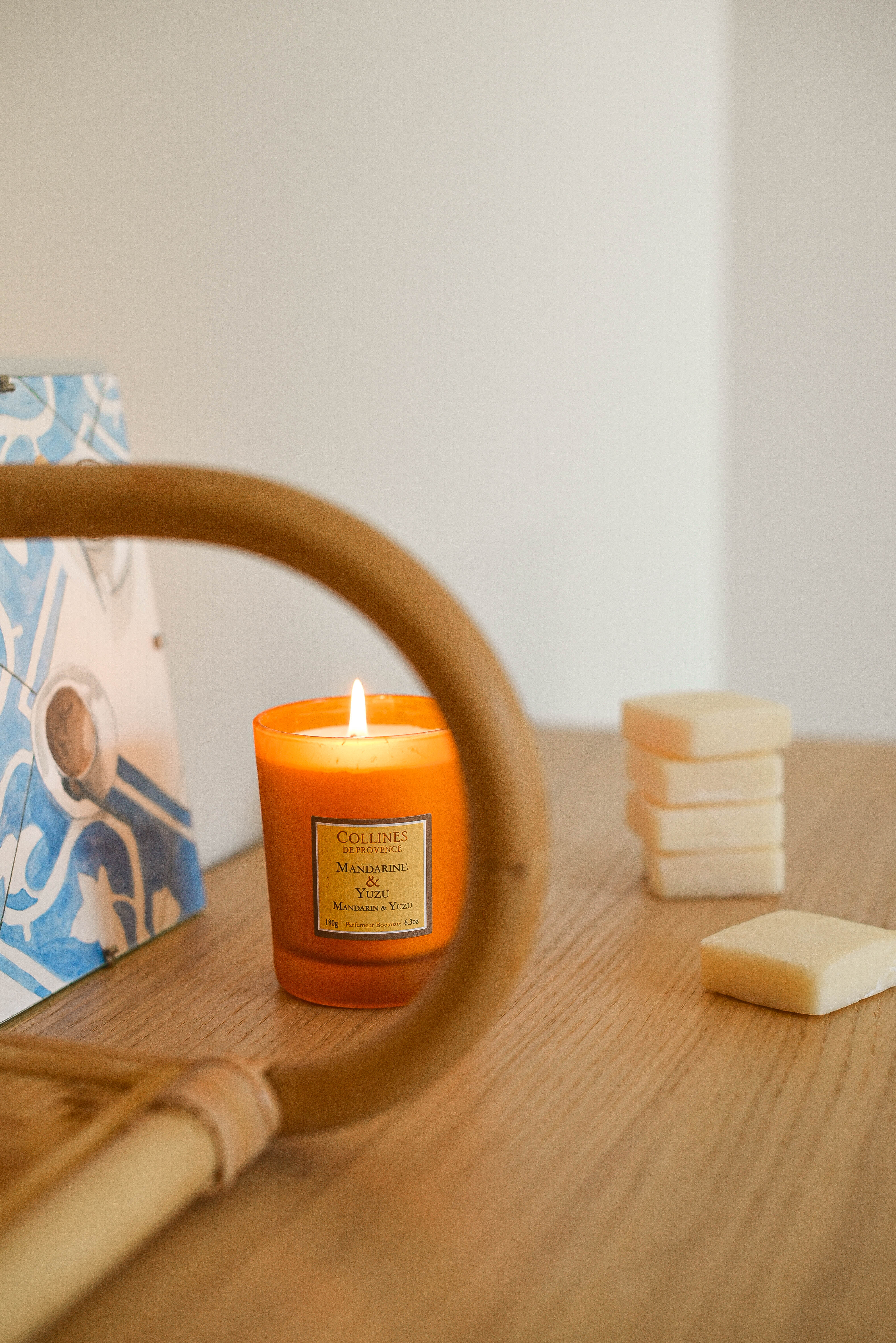Entdecken Sie die Duftkerze Mandarine & Yuzu von Collines de Provence – ein handgegossenes Meisterwerk aus der Haute-Provence.