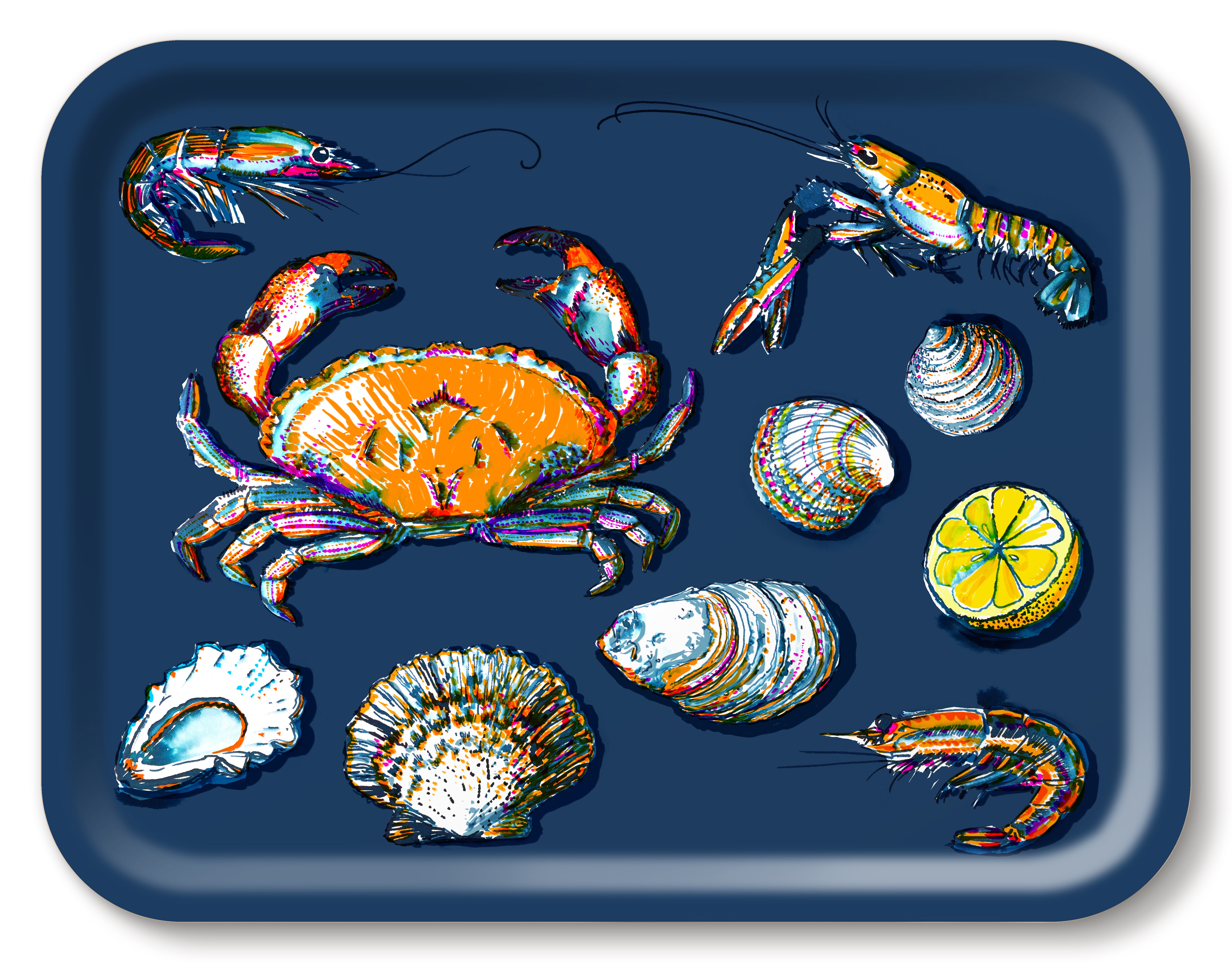Das dunkelblaue Tablett „Seafood“ von Jamida of Sweden, entworfen vom Designer Michael Angove, verbindet ansprechendes Design mit nachhaltiger Handwerkskunst.