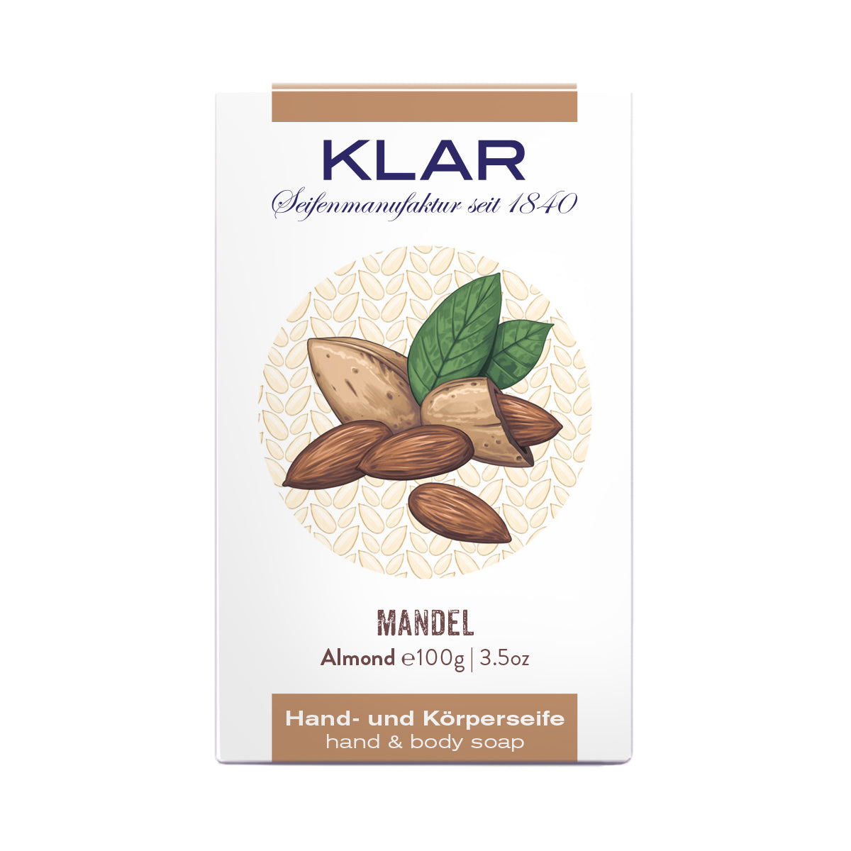 Klar Mandelseife ist ideal für trockene und raue Haut. Das enthaltene Vitamin E wirkt antioxidativ, während das pflegende Mandelöl intensiv Feuchtigkeit spendet und die Haut geschmeidig macht. Der warme, süße Duft von gemahlenen Mandelkernen sorgt für ein entspannendes Pflegeerlebnis. Frei von Palmöl und Cosmos-zertifiziert, bietet diese Seife sanfte, natürliche Pflege für ein wohltuendes Hautgefühl bei jeder Anwendung.