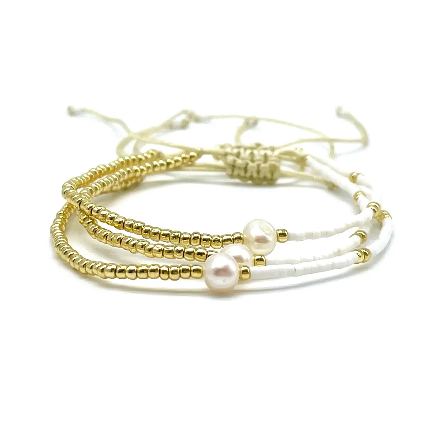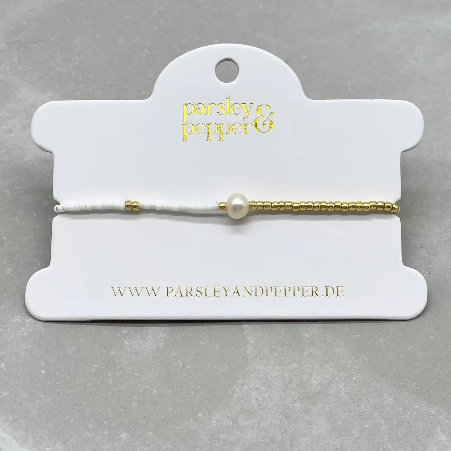 Das LA PERLA-Armband verbindet filigrane Eleganz mit vielseitiger Kombinierbarkeit. Das zarte Miyuki-Armband mit einer Süßwasserzuchtperle liegt angenehm am Handgelenk und überzeugt durch seine zurückhaltende, aber wirkungsvolle Optik.