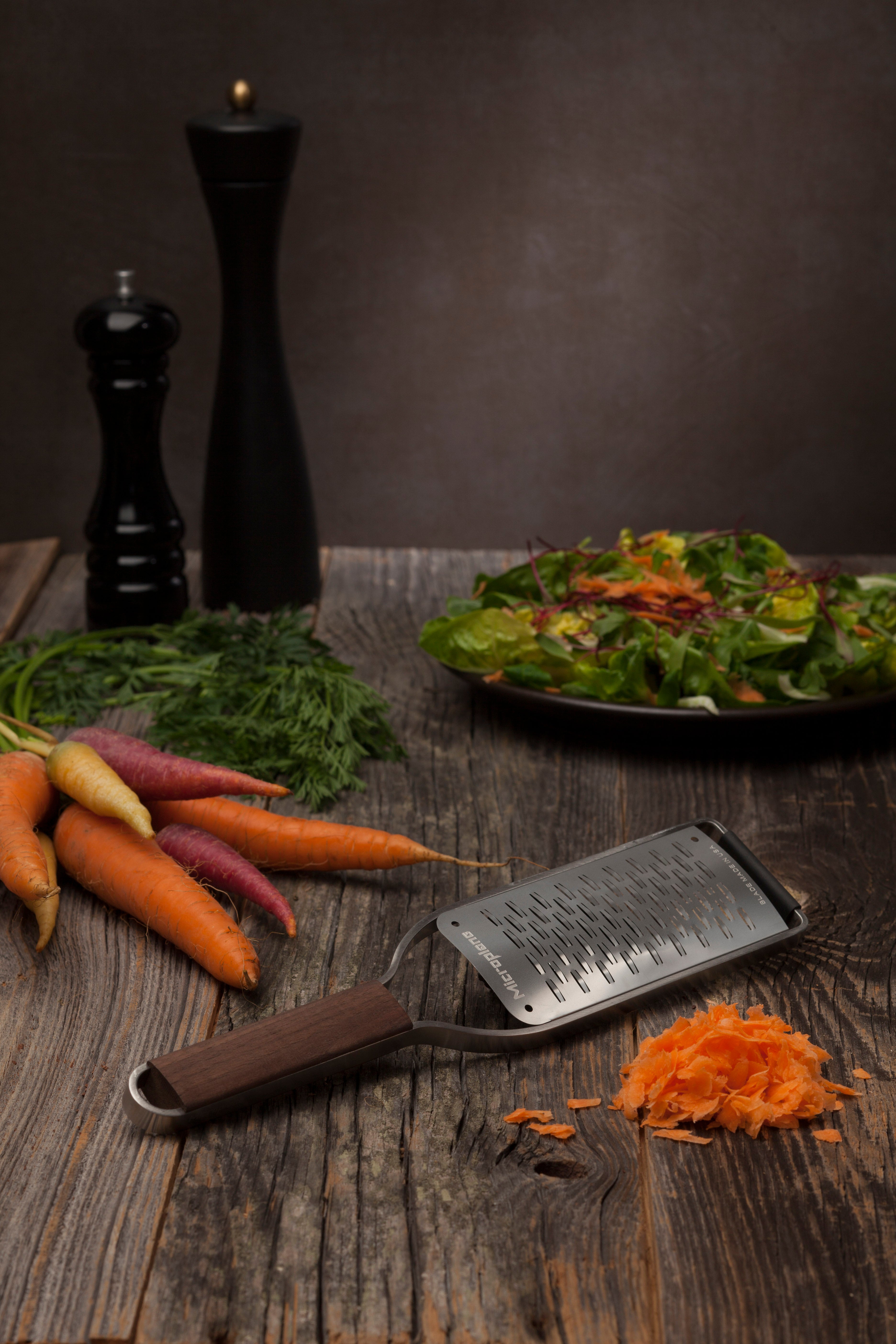 Erleben Sie mit der Microplane Master 2-Wege-Schneide die perfekte Symbiose aus Design und Funktionalität. Der elegante Walnussholzgriff aus Kentucky, USA, besticht durch natürliche Schönheit und erinnert an die Ursprünge meisterhafter Küchenwerkzeuge. Die Schneide ermöglicht Ihnen präzises und müheloses Arbeiten, sodass Ihre Kochmomente so stilvoll wie effektiv sind. Verleihen Sie Ihrer Küche mit diesem exklusiven Helfer Charakter und höchste Qualität.