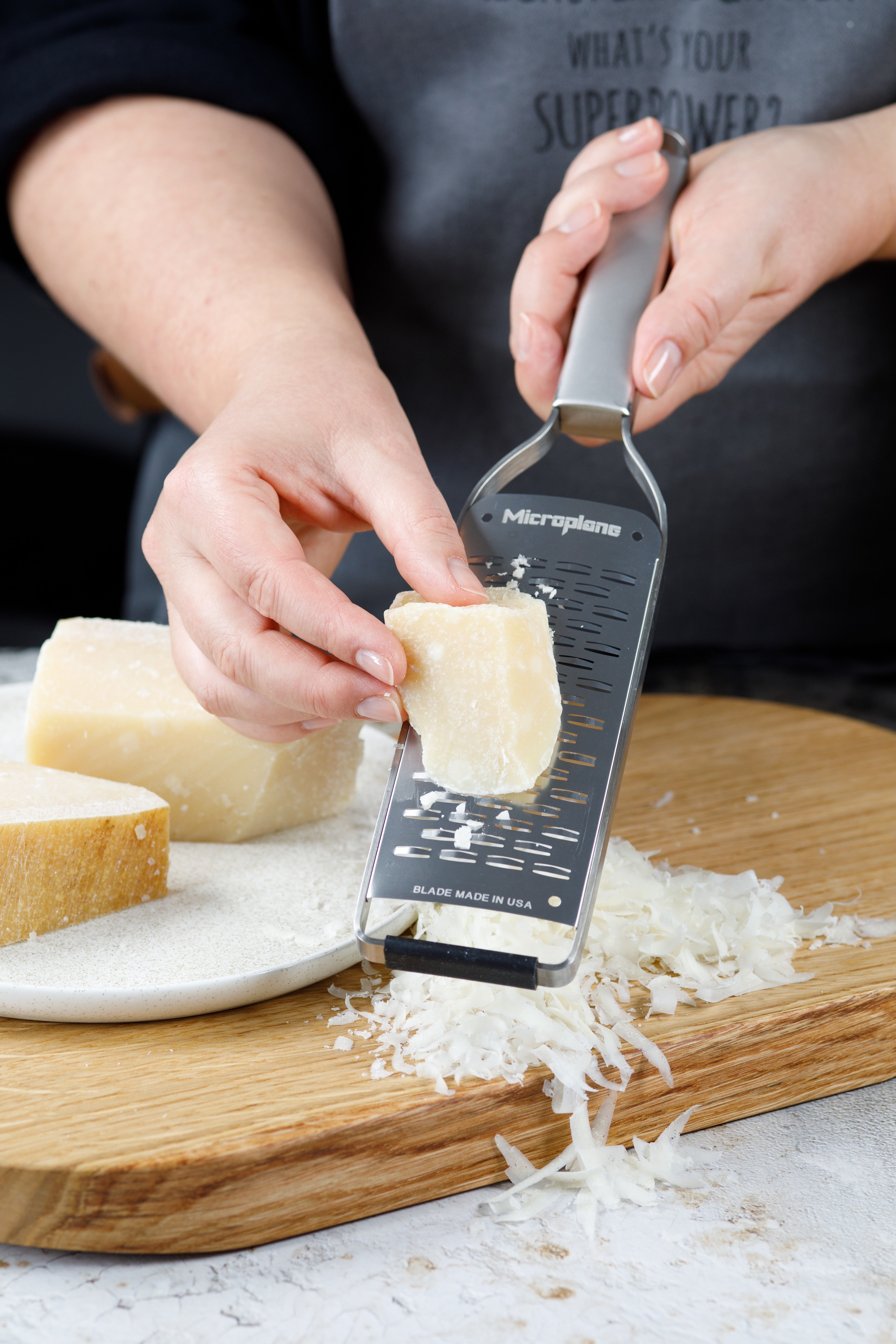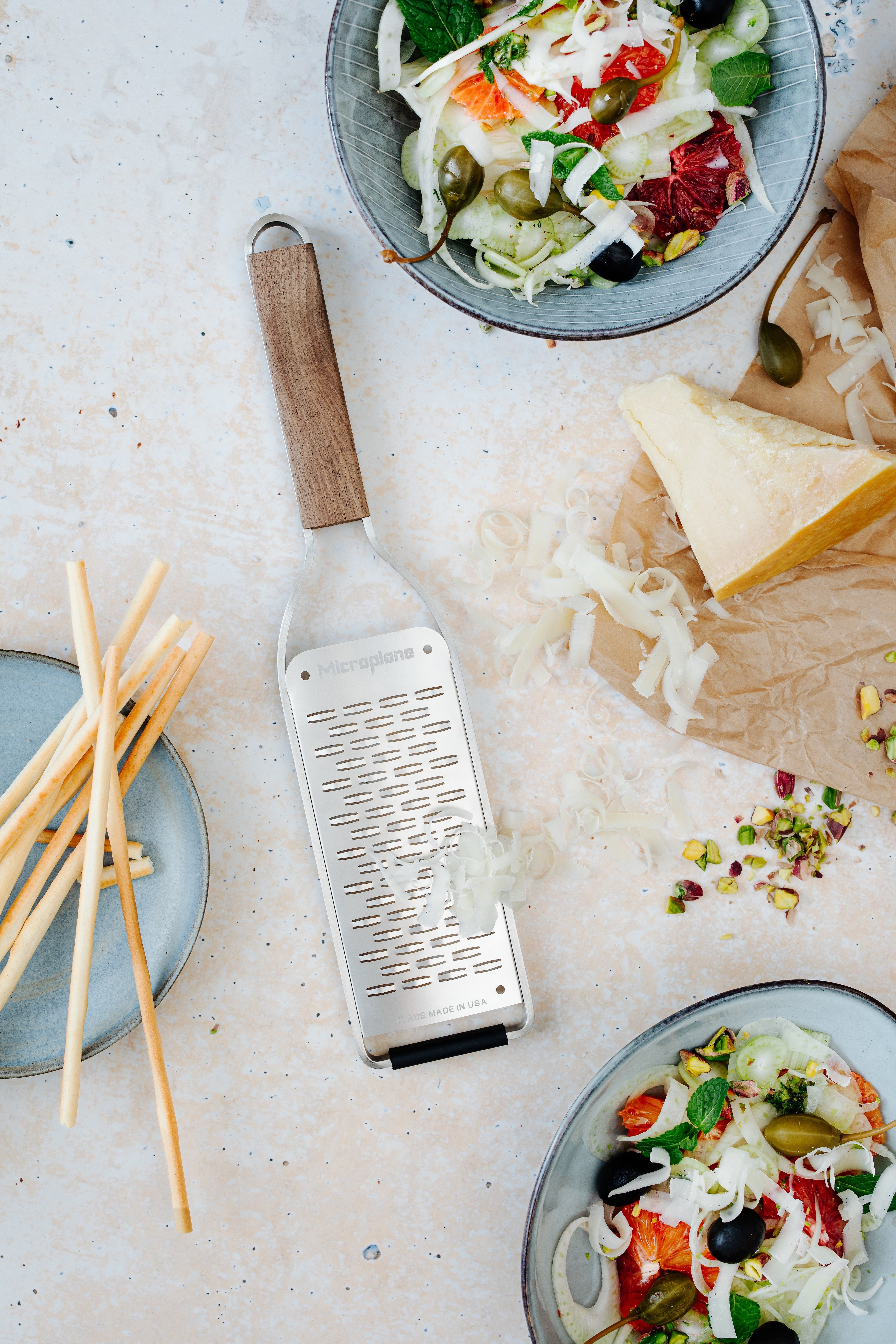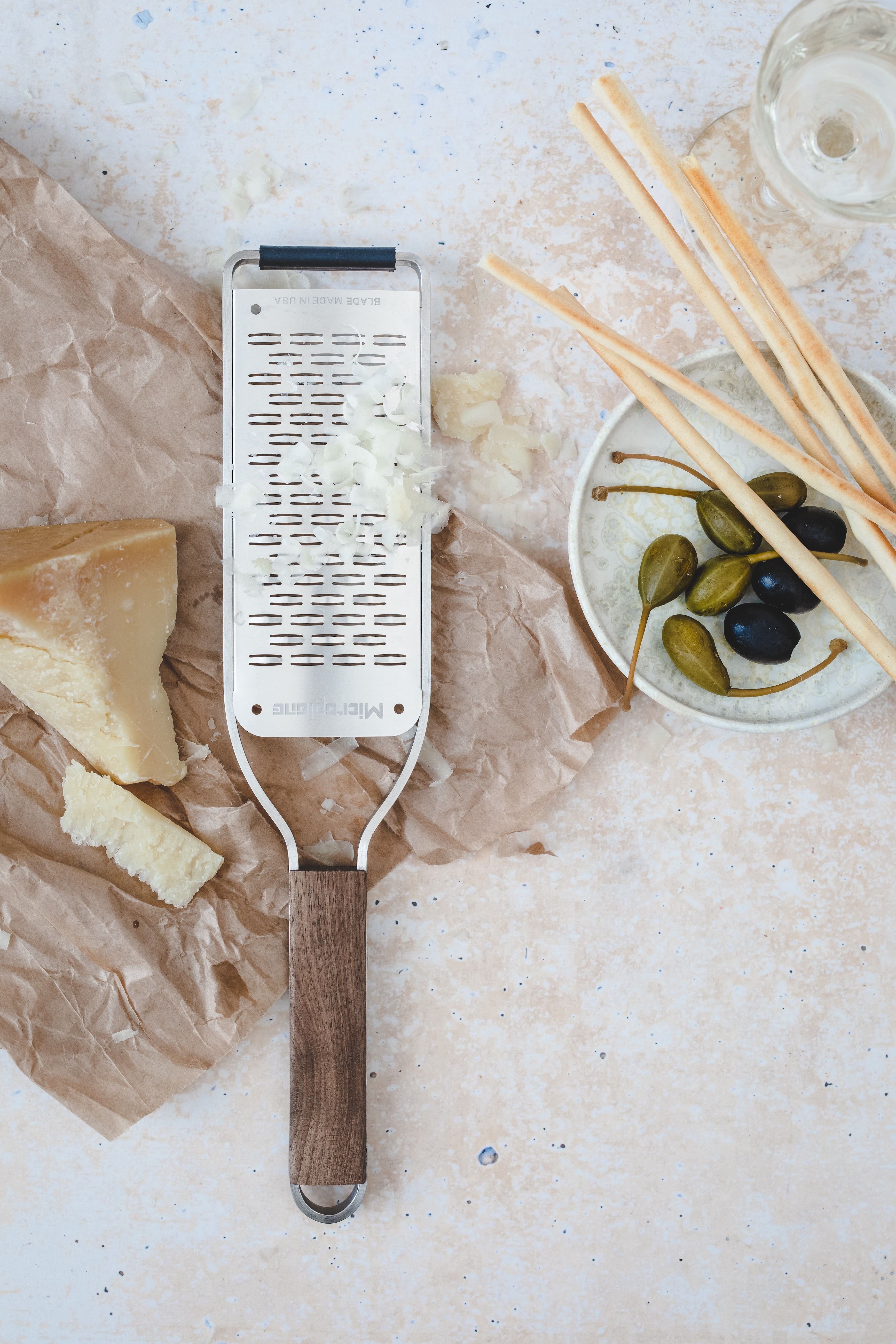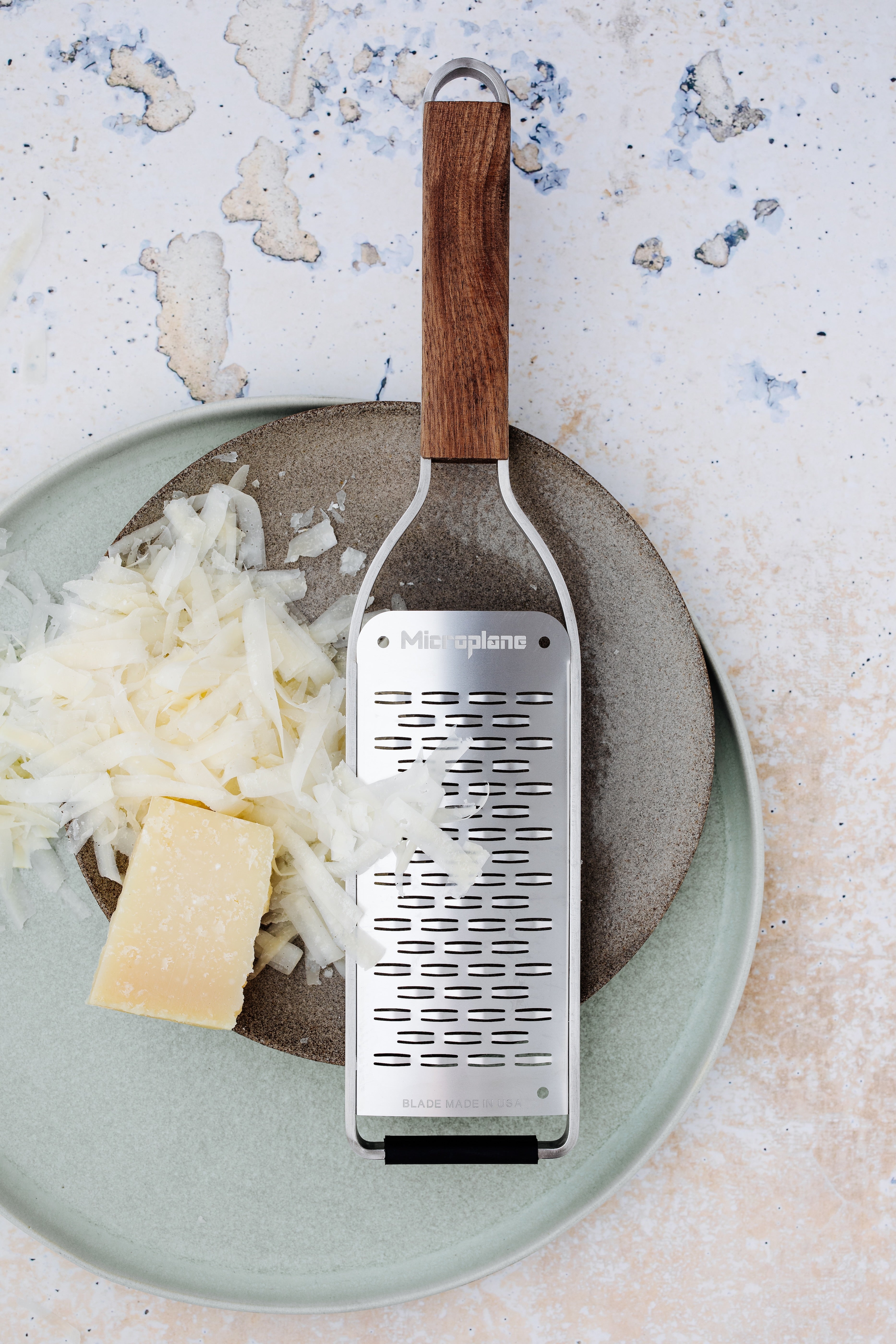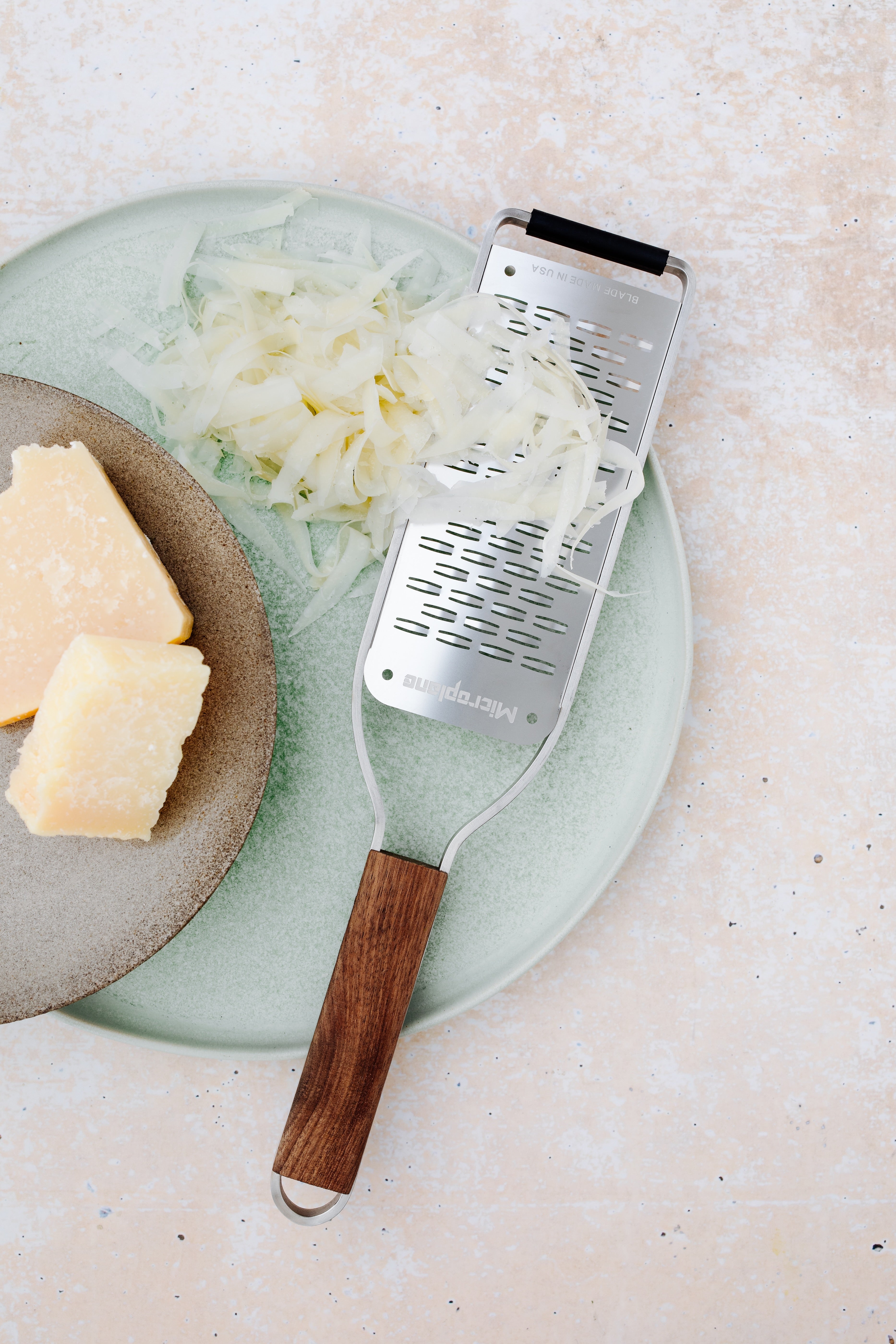 Die Microplane Master 2-Wege-Schneide kombiniert einen eleganten Walnussholzgriff, einen robusten Edelstahlrahmen und rasiermesserscharfe, photogeätzte Edelstahlklingen – „Made in USA“. Diese hochwertige Konstruktion garantiert stets optimale Reibergebnisse auf höchstem Niveau. Die 2-Wege-Schneide liefert feine, längliche Reibergebnisse, perfekt für Weich- und Hartkäse, Äpfel, Kartoffeln, Zucchini, Karotten, Schokolade und mehr. Durch die außergewöhnliche Schärfe schneiden die Klingen präzise ohne zu zerreißen, was intensiven Geschmack und volles Aroma bewahrt.