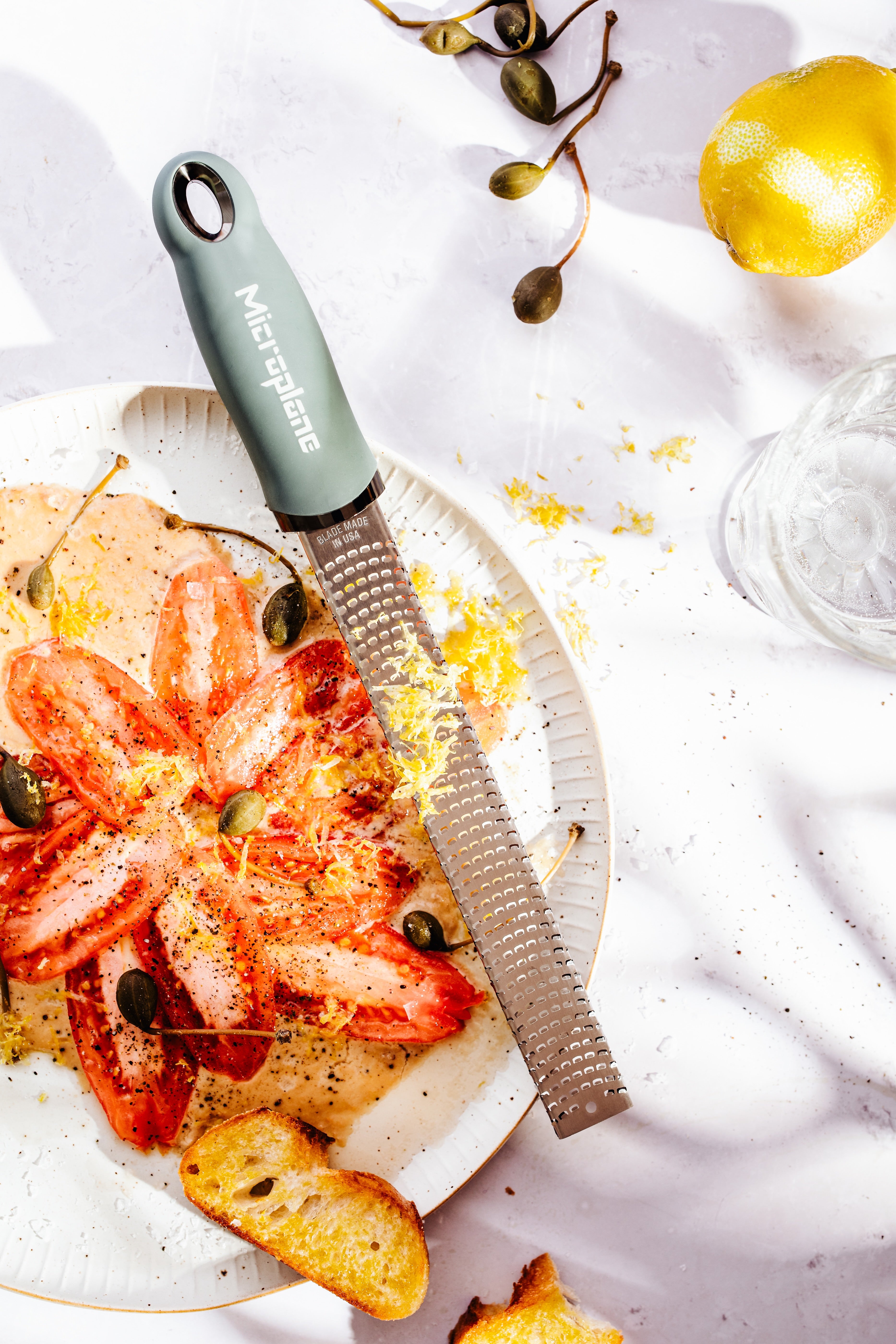Die Microplane Premium Classic Zesterreibe besticht durch ihr langes, schmales Design und die rasiermesserscharfe, photo-geätzte Edelstahlklinge – Made in USA. Mit 400 Mikrozähnen eignet sie sich perfekt für Zitrusfrüchte, Hartkäse, Schokolade, Ingwer, Knoblauch, Muskatnuss, Trüffel und Gewürze. Sie erleichtert das Reiben spürbar und liefert feinste, aromatische Ergebnisse – ein unverzichtbares Werkzeug für jede anspruchsvolle Küche.