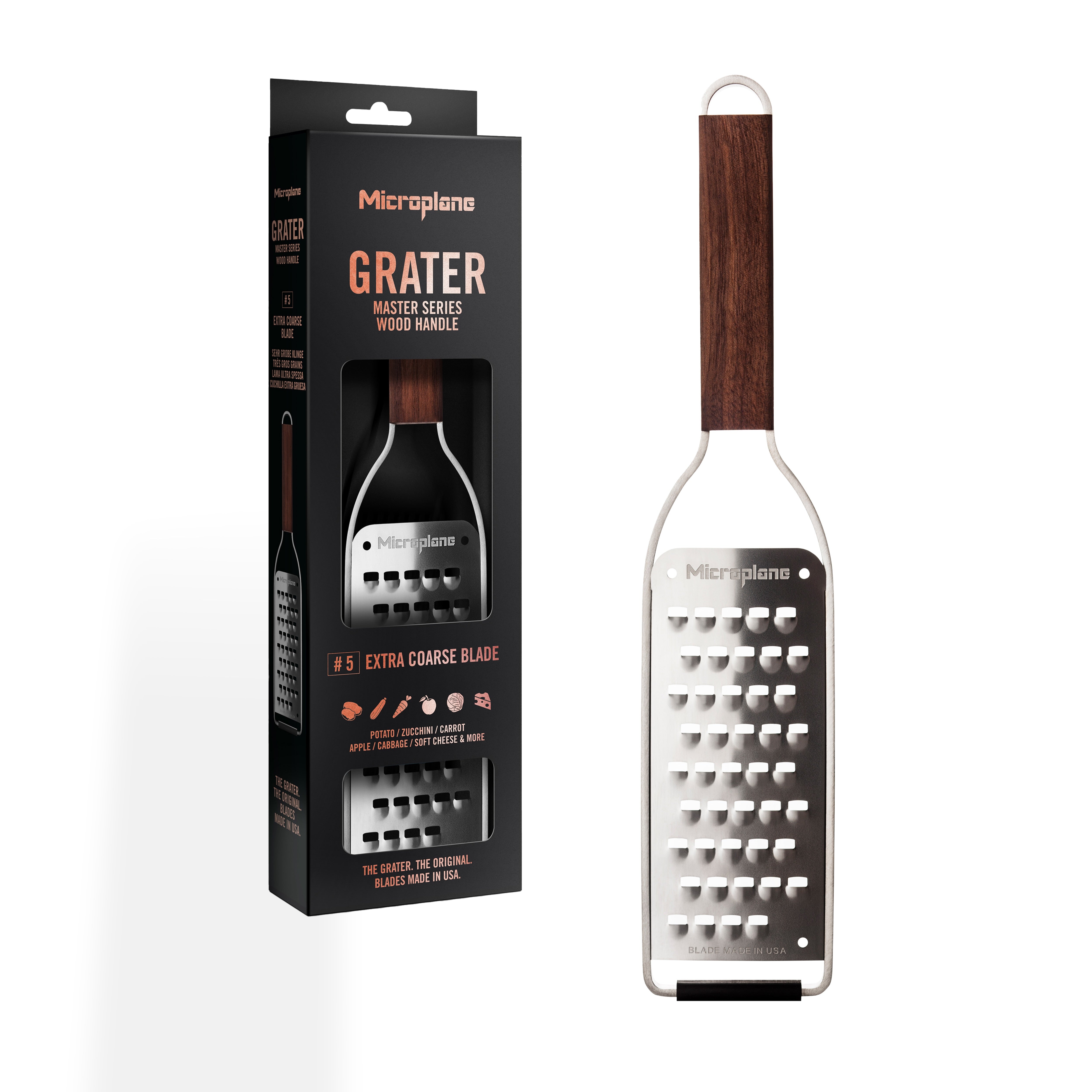 Die Microplane "Sehr grobe Reibe" aus der Master-Serie ist die ideale Wahl für alle Zutaten, die grob verarbeitet werden sollen. Die spezielle Klingenausführung schneidet kräftige Streifen und eignet sich hervorragend für weichen Käse, Früchte und Gemüse wie Äpfel, Zwiebeln, Kohl oder Kartoffeln.