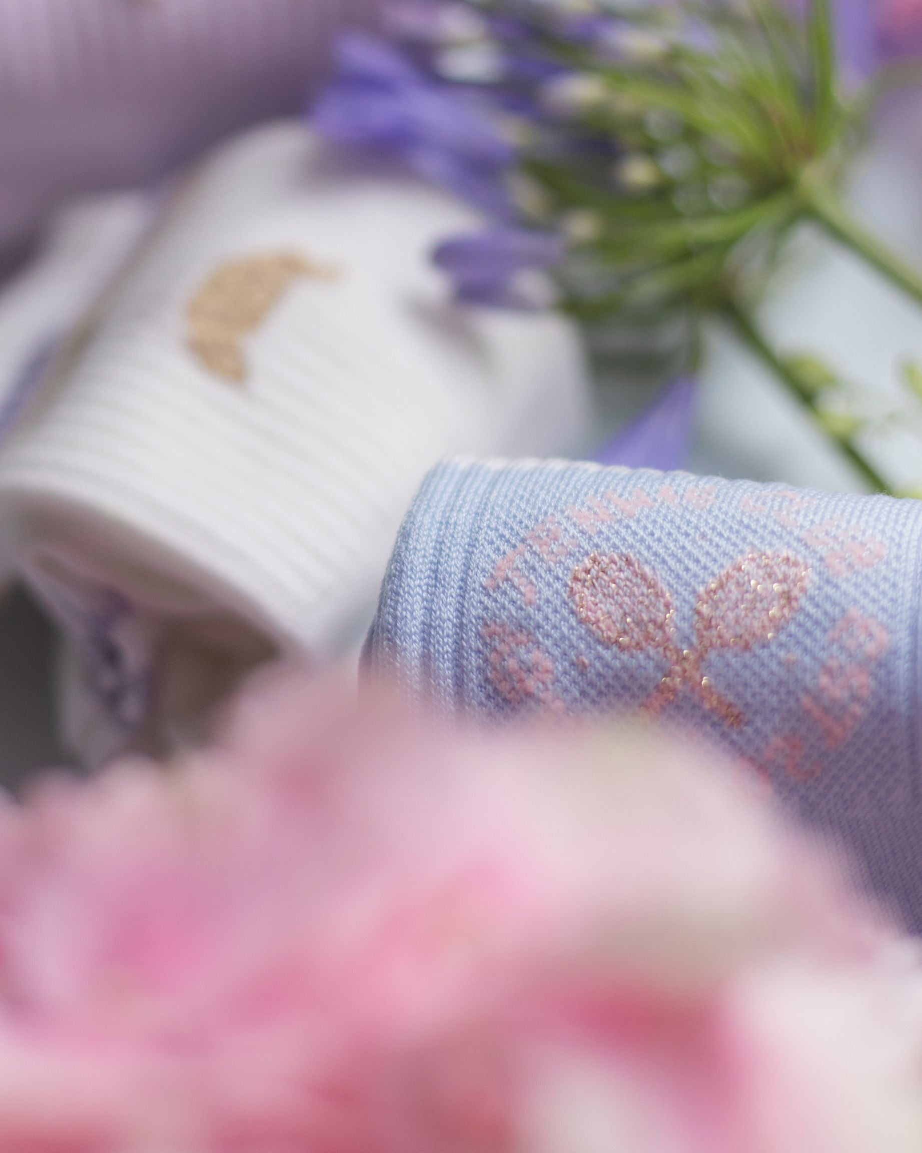 Raffinesse beginnt im Detail. Diese exquisiten Socken verbinden zeitlose Eleganz mit modernem Flair – zarte Pastellnuancen treffen auf Statement-Icons.