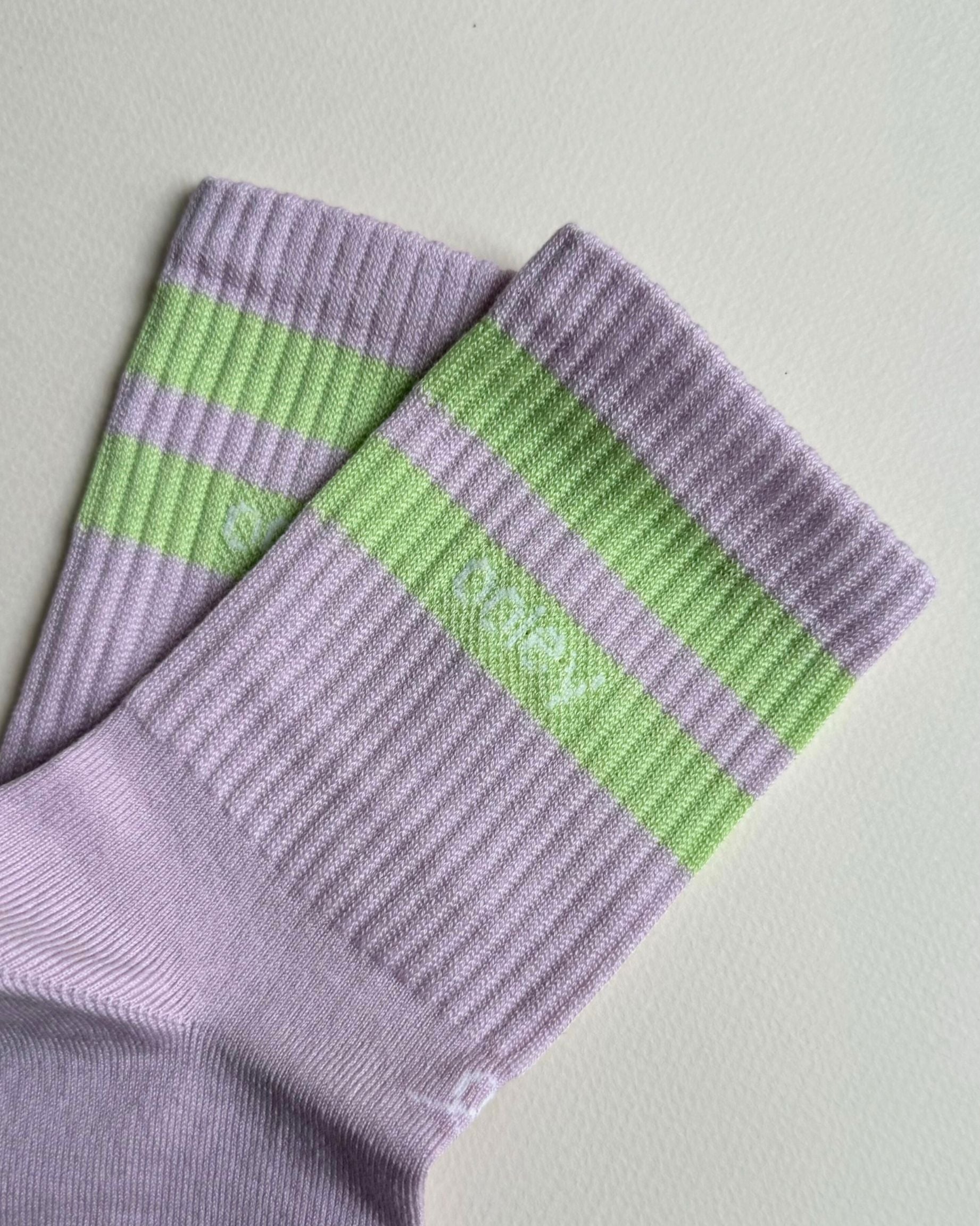 Die Ooley Streetmood Light Socken Dream Lavender verbinden zartes Flieder mit sanftem Hellgrün zu einem modernen, klaren Design.