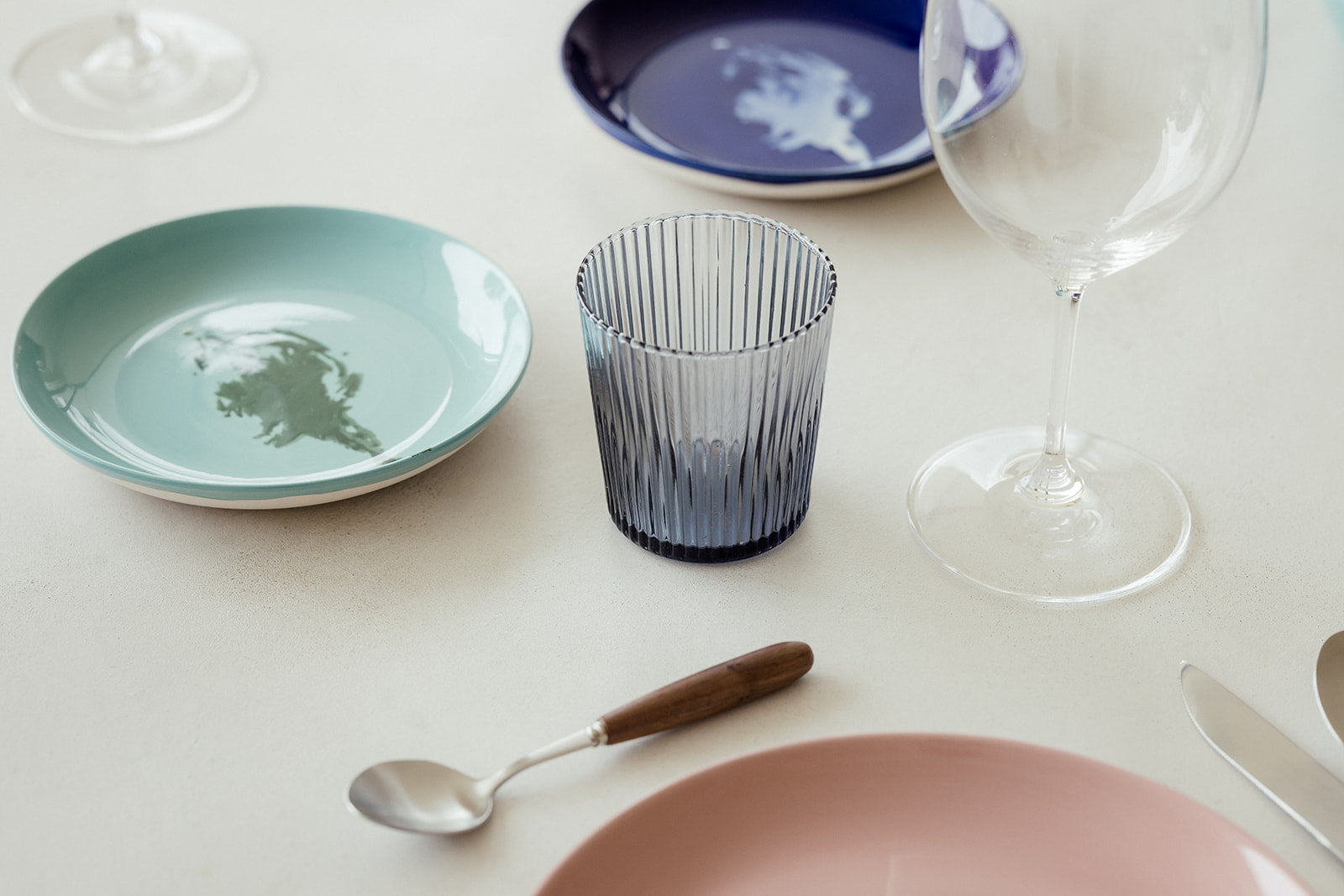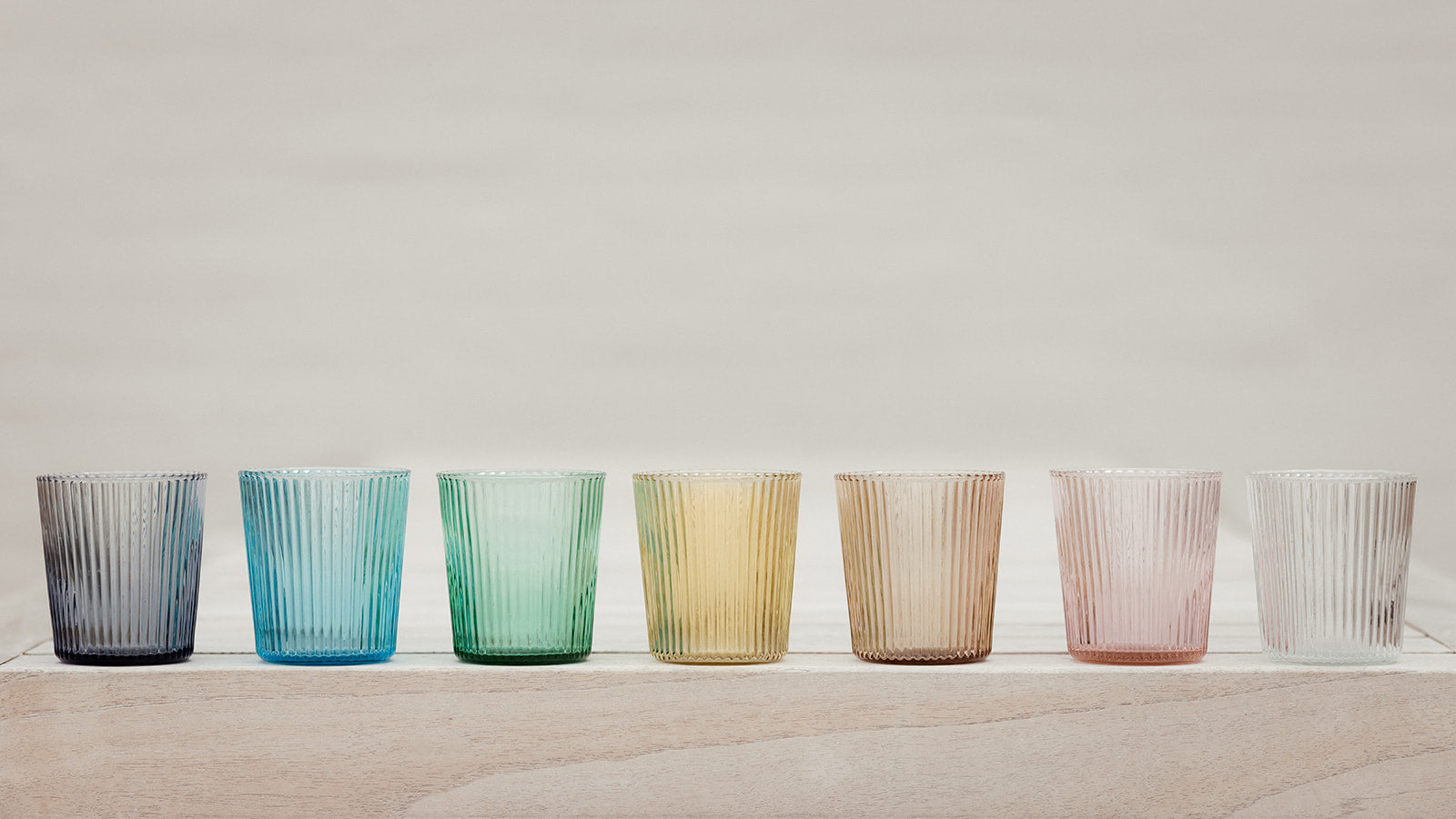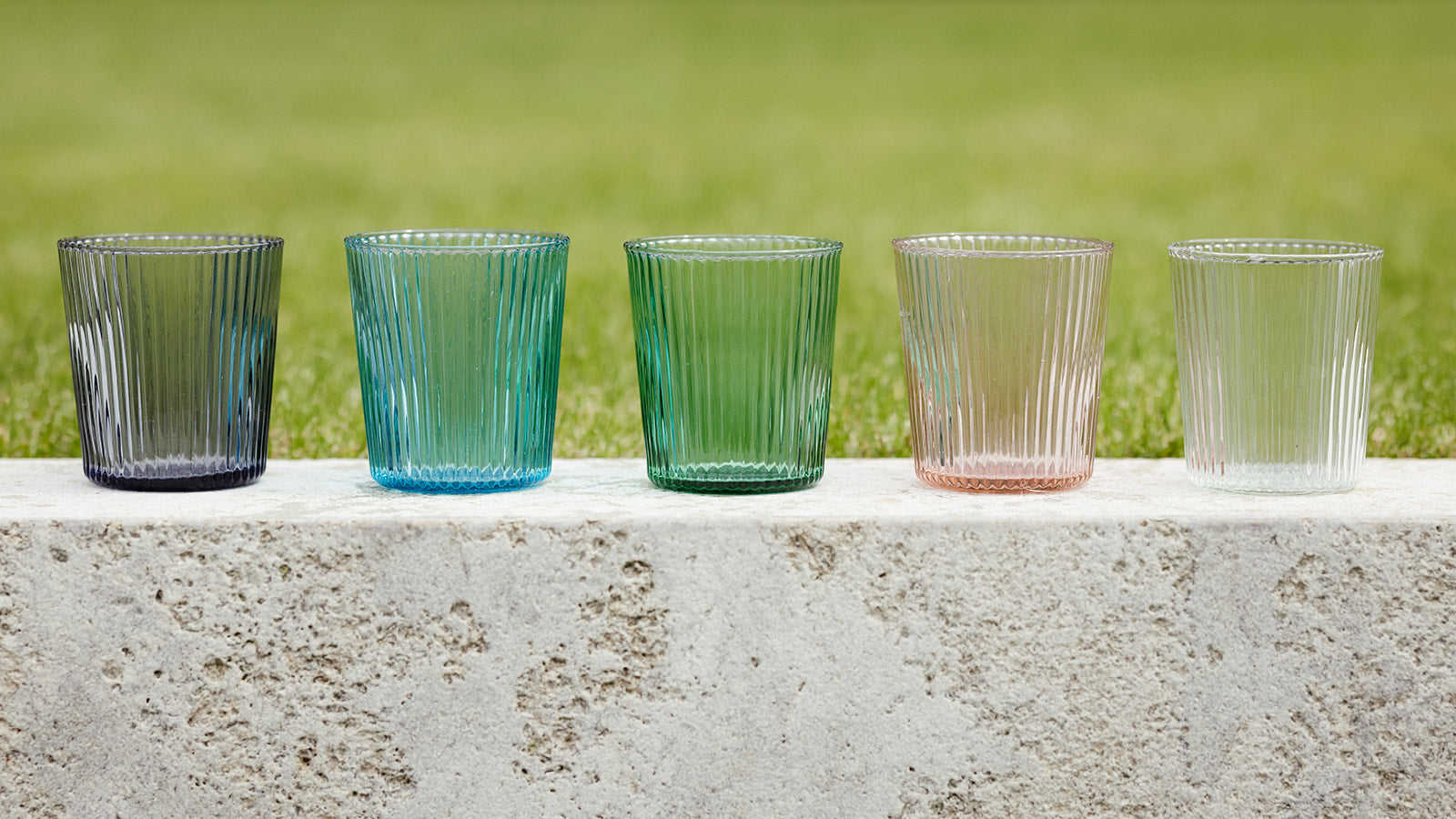 Kombinieren Sie die Gläser mit einer Wasserflasche von Paveau für einen lebendigen und nachhaltigen Look.