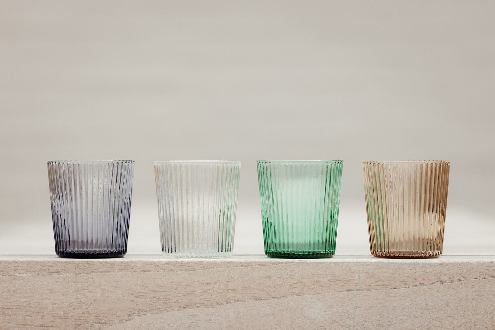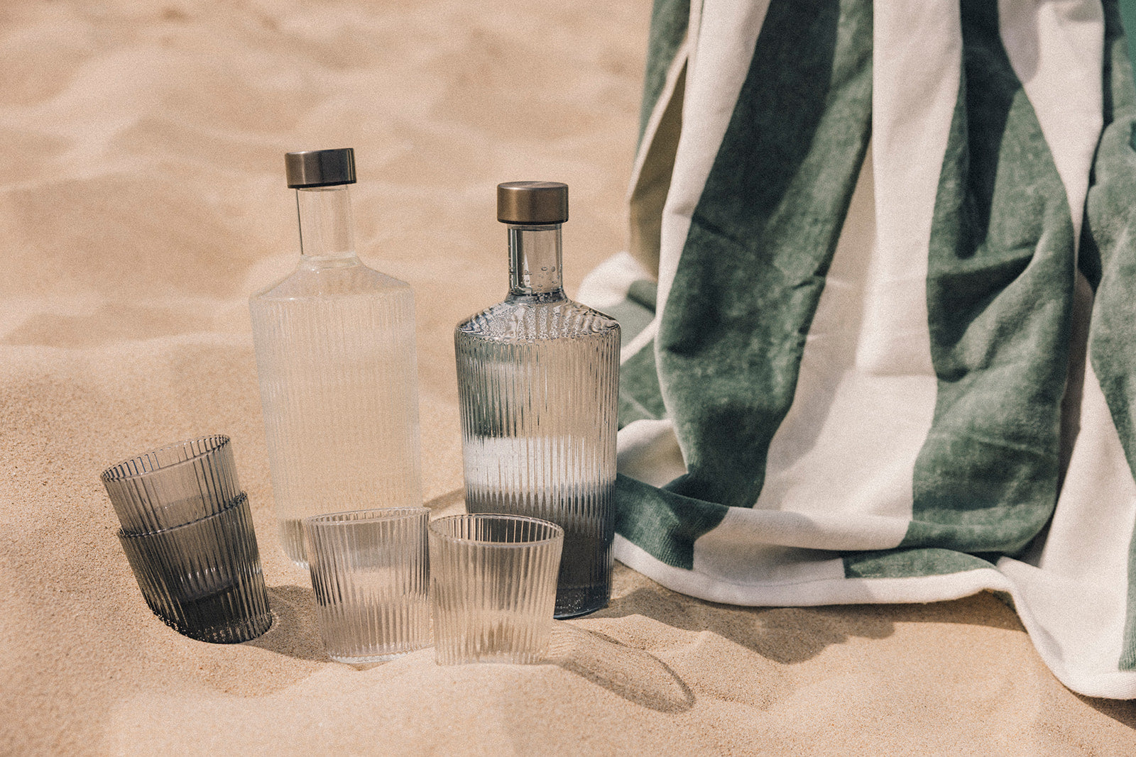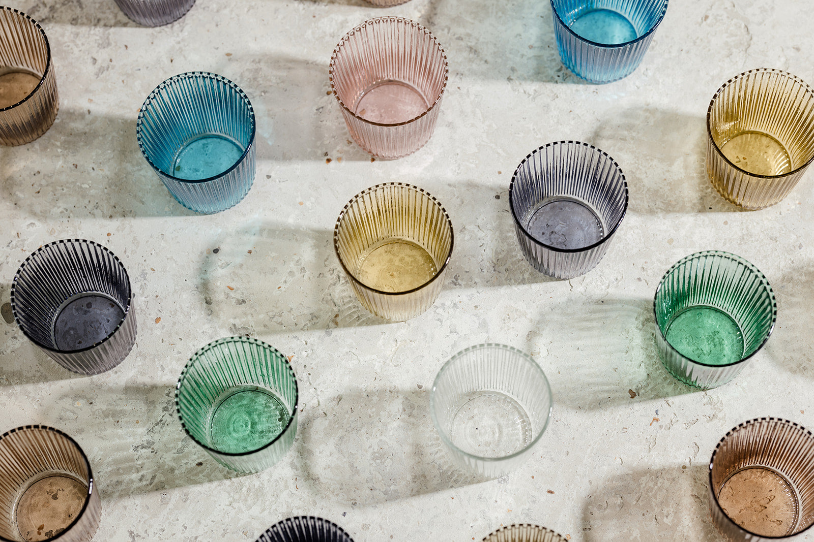 Kombinieren Sie die Gläser mit einer Wasserflasche von Paveau für einen lebendigen und nachhaltigen Look.