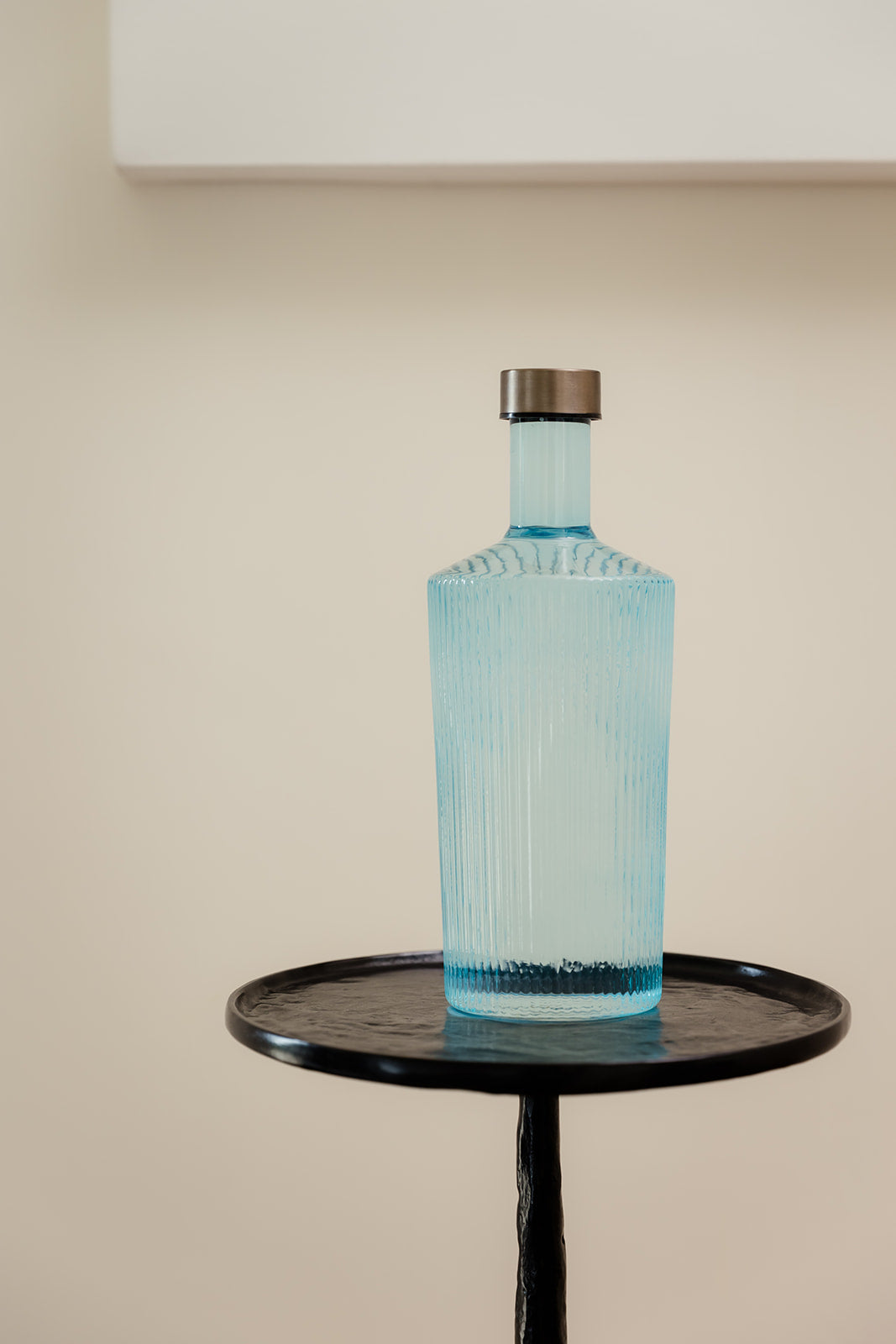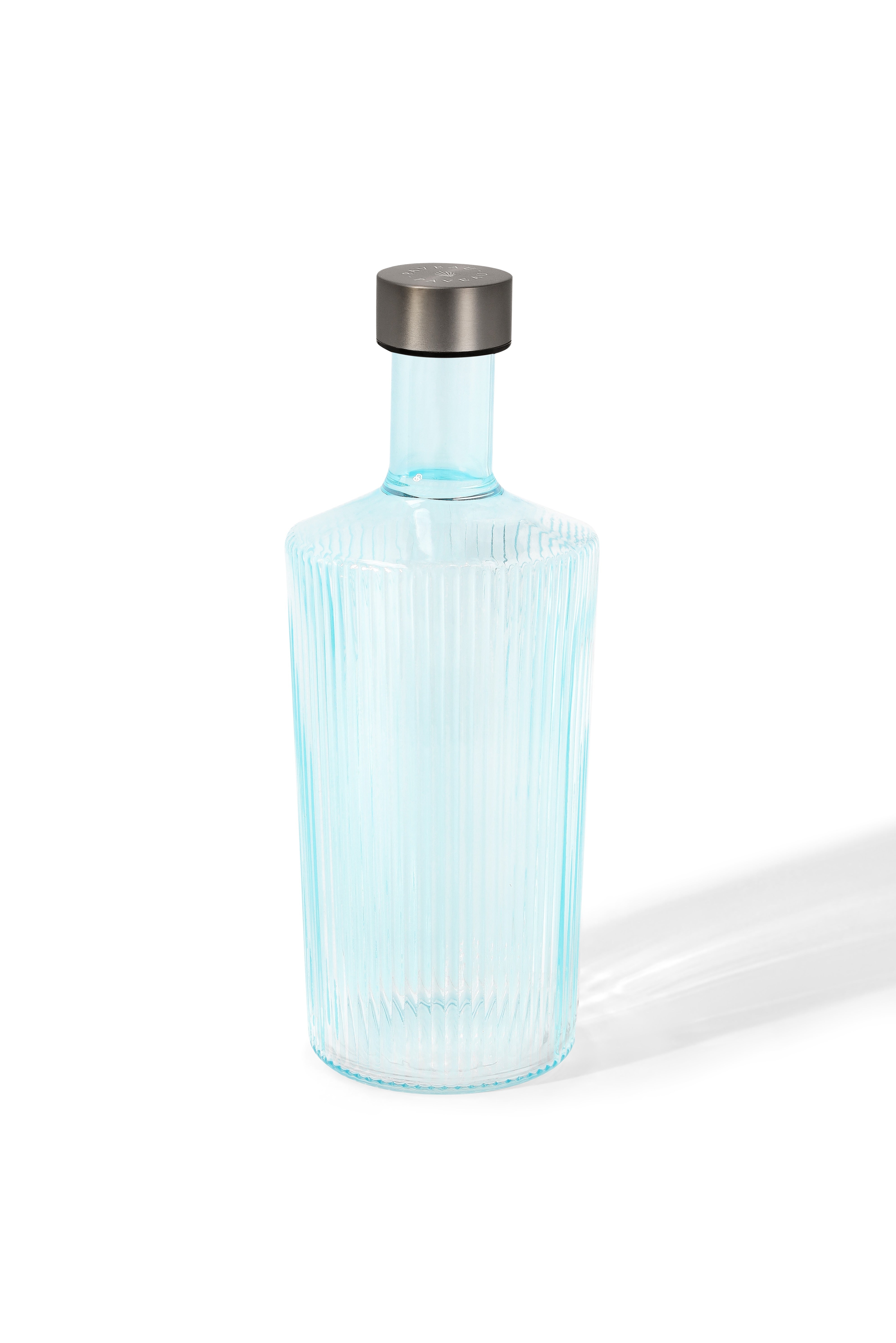Die Wasserflasche der belgischen Marke Paveau ist ein ästhetisches Accessoire für jeden gedeckten Tisch, denn sie vereint Design und Nachhaltigkeit auf geschmackvolle Art und Weise. Das mundgeblasene Glas und ihr feines Rillendekor, das an edle Spirituosenflaschen erinnert, machen sie zu einem stilvollen Begleiter auf Ihrem Tisch. Der praktische Metall-Schraubverschlusses verhindert das Entweichen von Kohlensäure.