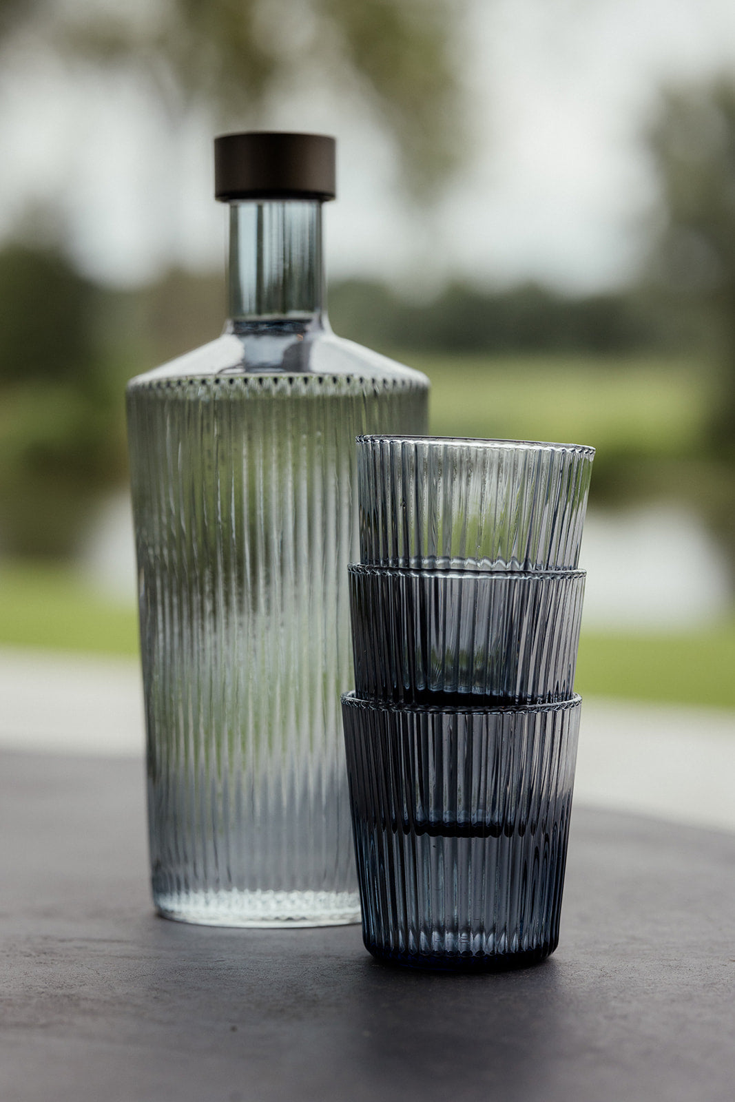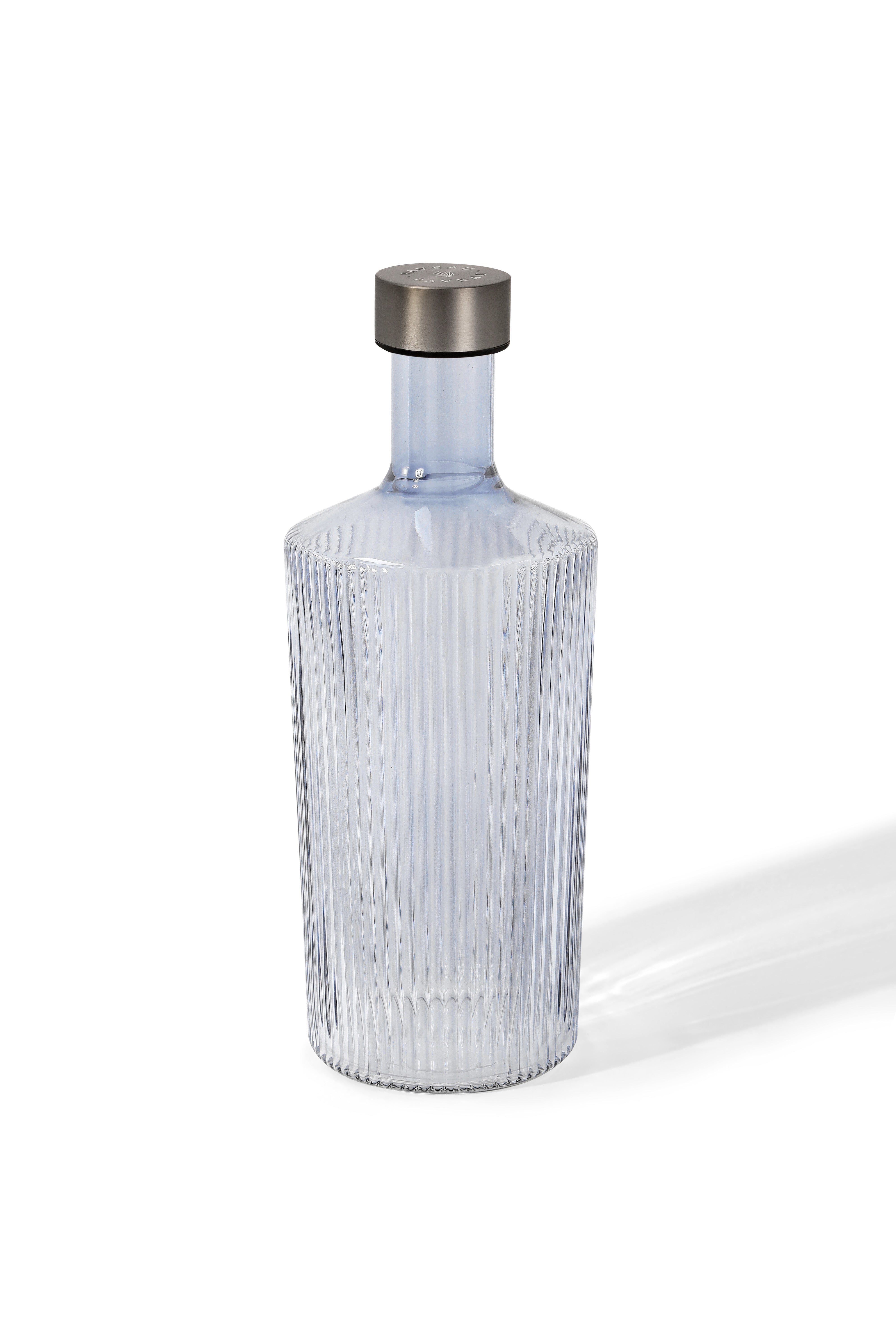 Die Wasserflasche der belgischen Marke Paveau ist ein ästhetisches Accessoire für jeden gedeckten Tisch, denn sie vereint Design und Nachhaltigkeit auf geschmackvolle Art und Weise. Das mundgeblasene Glas und ihr feines Rillendekor, das an edle Spirituosenflaschen erinnert, machen sie zu einem stilvollen Begleiter auf Ihrem Tisch. Der praktische Metall-Schraubverschlusses verhindert das Entweichen von Kohlensäure.