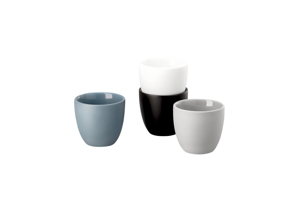 Der Espressobecher The Cup+ von Rosenthal vereint elegantes Design mit modernem Minimalismus. Die vier stilvollen Farbvarianten Comfort Blue, Gentle Grey, Delicate Black und Silky White spiegeln einen zeitgemäßen Wohnstil wider und passen perfekt zu einer modernen Tischkultur.