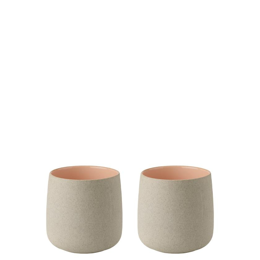 Die Stelton Becher Emma im 2er-Set sind aus hochwertigem Steingut gefertigt und überzeugen mit ihrer robusten Optik, außen matt und innen glänzend.